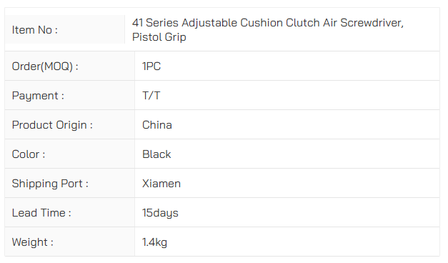 41 Series Adjustable Cushion Clutch Air Screwdriver, Pistol Grip