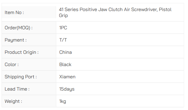 41 Series Positive Jaw Clutch Air Screwdriver, Pistol Grip