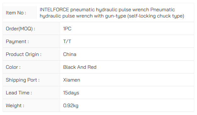 INTELFORCE pneumatic hydraulic pulse wrench Pneumatic hydraulic pulse wrench with gun-type (self-locking chuck type)