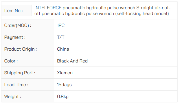 INTELFORCE pneumatic hydraulic pulse wrench Straight air-cut-off pneumatic hydraulic pulse wrench (self-locking head model)