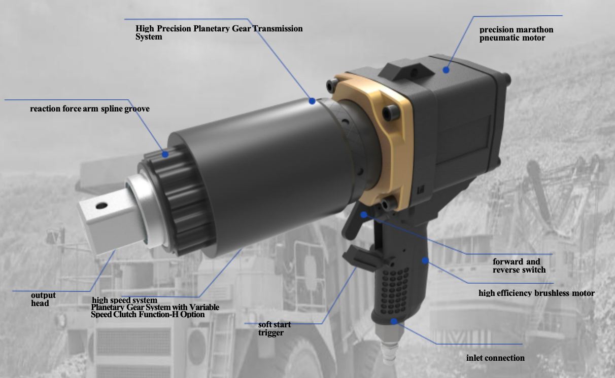 The PNX series pneumatic gun torque wrenches are engineered for industrial applications requiring precision and high-volume operations. Featuring a precision high-speed gearbox design, they deliver stable and powerful continuous torque output, making them ideal for heavy-duty industrial environments where high-efficiency and stability are critical. Equipped with industry-leading precision motors, the PNX series ensures consistent performance even during prolonged operation. Customizable options include standard, long-bar, and bent-head high-speed variants to meet diverse needs. With an accuracy of ±5% and repeatability of ±2%, these wrenches deliver reliable performance across various applications.