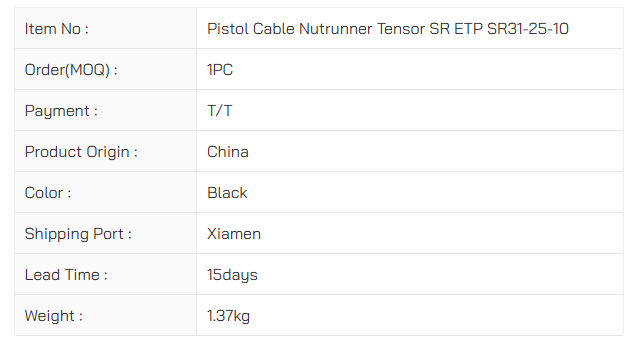 Pistol Cable Nutrunner Tensor SR ETP SR31-25-10 8434108106