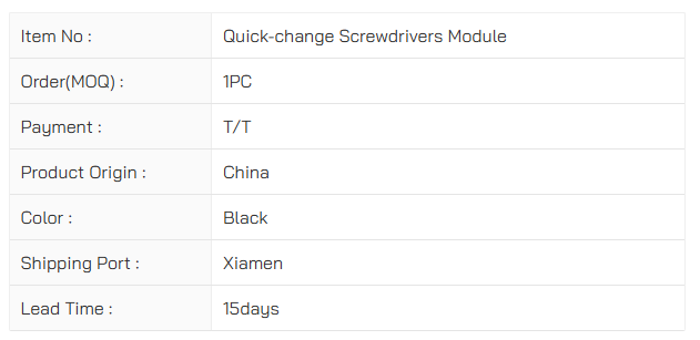 Quick-change Screwdrivers Module Torque range: 0.3~35Nm