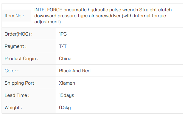 air screwdriver (with internal torque adjustment) pneumatic hydraulic pulse wrench Straight clutch downward pressure type